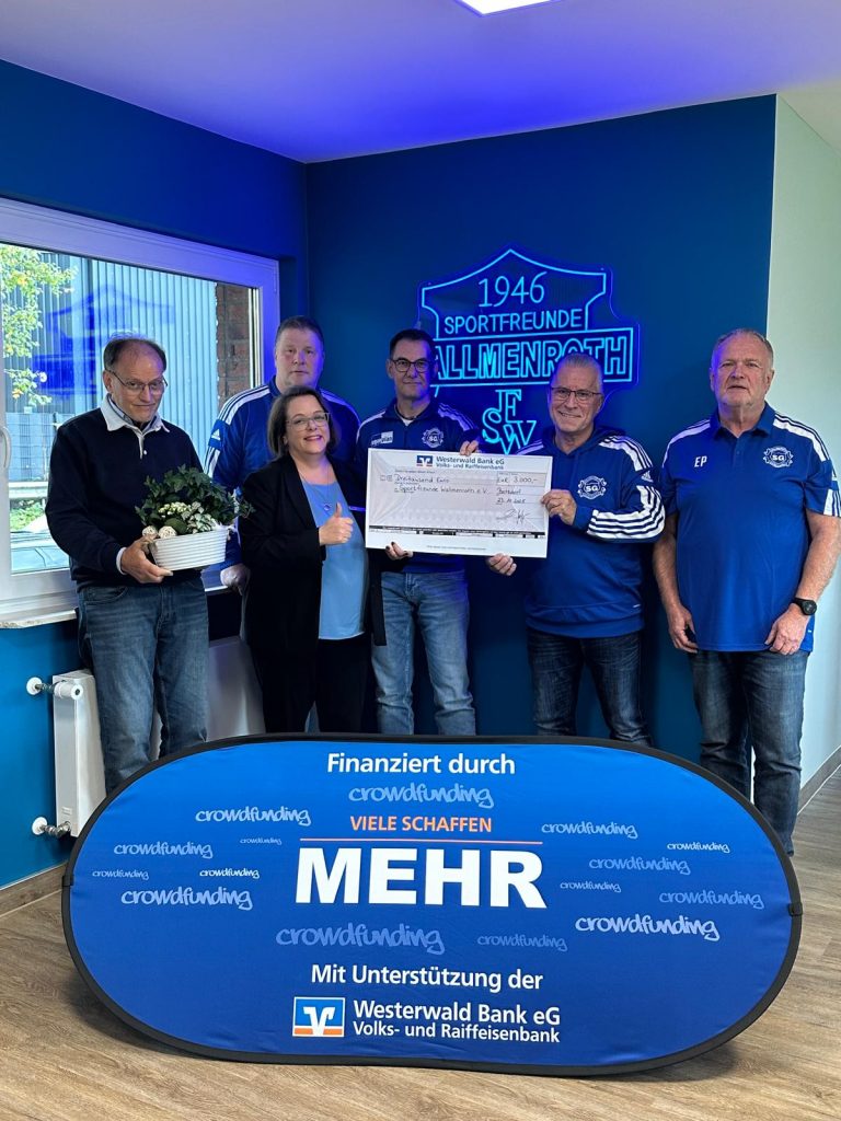 Wallmenroth. Große Freude bei den Sportfreunden Wallmenroth: Im Rahmen des Crowdfunding-Projekts der Westerwald Bank eG erhielt der Verein eine Spende in Höhe von 3.000 Euro. Die symbolische